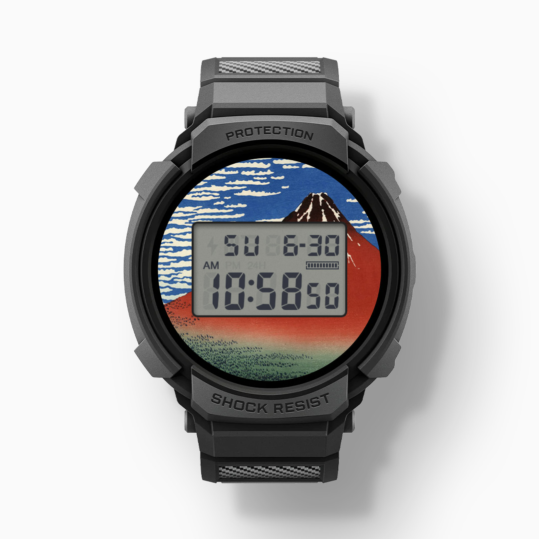 This watch face is more than just a design; it’s a wearable celebration of Hokusai’s profound impact on art history, where classic Japanese aesthetics beautifully merge with his unparalleled creativity. It encapsulates the rich legacy of an artist whose innovative spirit laid the groundwork for modern “Manga” and “Anime.”