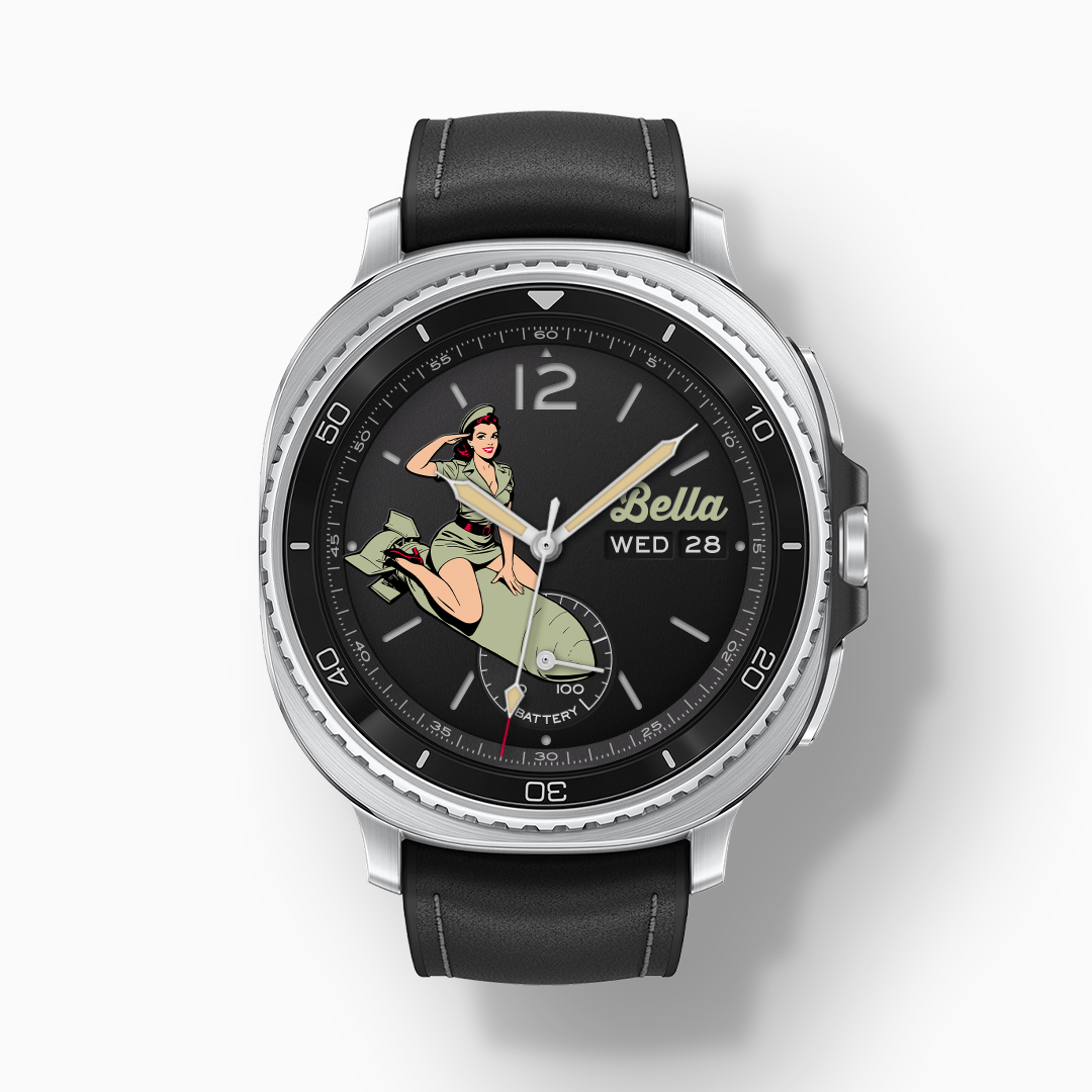 Inspired by the iconic 1950s military nose art and vintage American culture, this analog watch face adds a touch of classic art to your wrist. Whether you love the WWII aviation aesthetic or a clean minimalist look, this app offers versatile customization options to match your style.